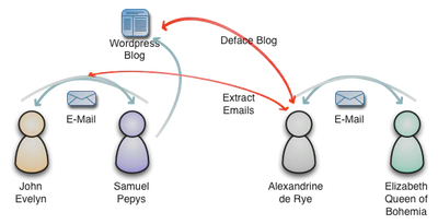 The other issue when creating an assignment is implementing the scenario with sufficient fidelity to provide a rich set of evidence. Virtual machines readily allow a comprehensive set of infrastructure to be setup to implement the scenario. Using the scenario detailed above as an example, two virtual machine were created. One was a server used by Samuel Pepys and John Evelyn to exchange emails and to host Pepys’ Wordpress blog. The server was accessible from the Internet by port forwarding through the network firewall and using a DynDNS domain. The other VM represented the computer used by Alexandrine de Rye for her hacking. This VM connected to the Internet through a VPN tunnel with an end point in the Netherlands. Elizabeth Queen of Bohemia and Alexandrine de Rye exchanged emails using an Internet-based email server.